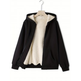 Solid Zip Up Fall & Winter Jacket, Casual Mock Neck Long Sleeve Outerwear, Women's Clothing
