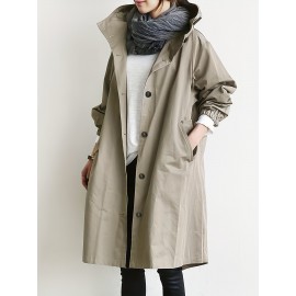 Double Breasted Trench Coat, Elegant Lapel Long Sleeve Outerwear, Women's Clothing